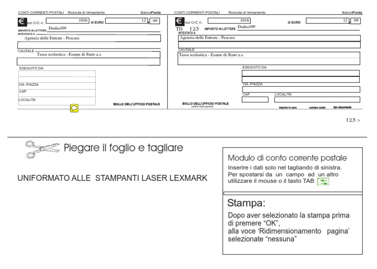 . Che la procedura deve essere conclusa entro e non oltre il 30 novembre. 4958 a favore di Agenzia delle Entrate Centro operativo di Pescara - Tasse scolastiche sul cc postale n. Stampare un certificato del superamento dellesame di Stato. Fotocopia del documento di identità in corso di validità.